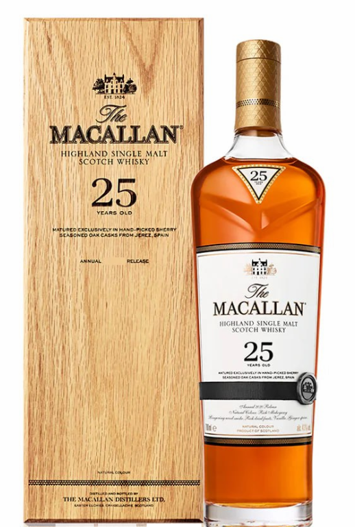 麥卡倫雪莉橡木 25 年是其雪莉橡木系列的一部分,該系列採用一系列單一麥芽威士忌,完全在赫雷斯手工採摘的雪莉橡木桶中成熟,豐富而復雜。 這種特殊的單一麥芽威士忌散發出濃郁而飽滿的風味,帶有柑橘、乾果和木煙味。